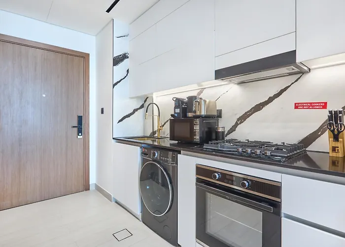 Los espacios del Serene Studio están cuidadosamente diseñados para brindar el máximo confort. Puedes disfrutar de un lujoso jacuzzi privado que se convierte en el lugar perfecto para relajarte después de un día de exploración. La habitación cuenta con una decoración contemporánea y acogedora, creando un ambiente perfecto para desconectar. Además, la cocina totalmente equipada te permitirá preparar tus comidas favoritas con comodidad. La gastronomía no se queda atrás, ya que en la zona podrás encontrar una variedad de restaurantes que ofrecen desde platos locales hasta opciones internacionales. No dudes en explorar las delicias culinarias que Business Bay tiene para ofrecer, complementando así tu experiencia.